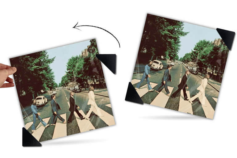 No drills, no tools. Just peel the tape, slide the holders into your record sleeve, and press it against the wall.